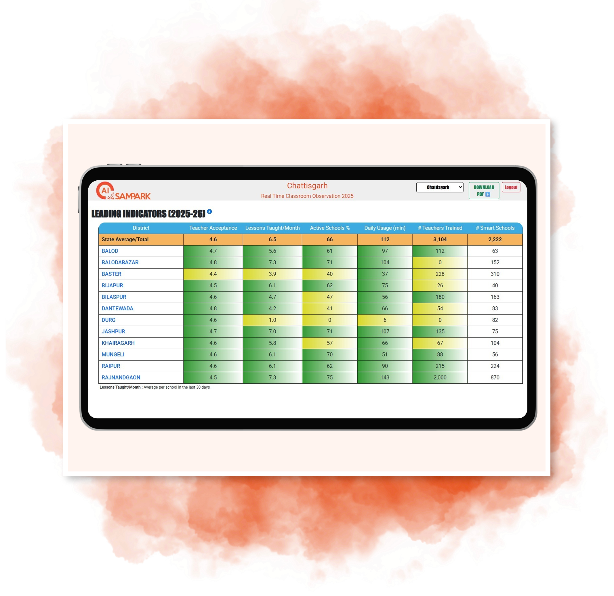 Finally, we ensure data-driven implementation through Sampark AI for Insights, a robust monitoring and analytics dashboard that provides valuable insights. It captures real-time usage data, classroom progress, and training effectiveness across states. With over 10 lakh data points collected per month, the insights are presented to government officials to drive evidence-based decisions and policy action. This feedback loop strengthens accountability, enhances teaching quality, and ensures that every classroom moves forward together.